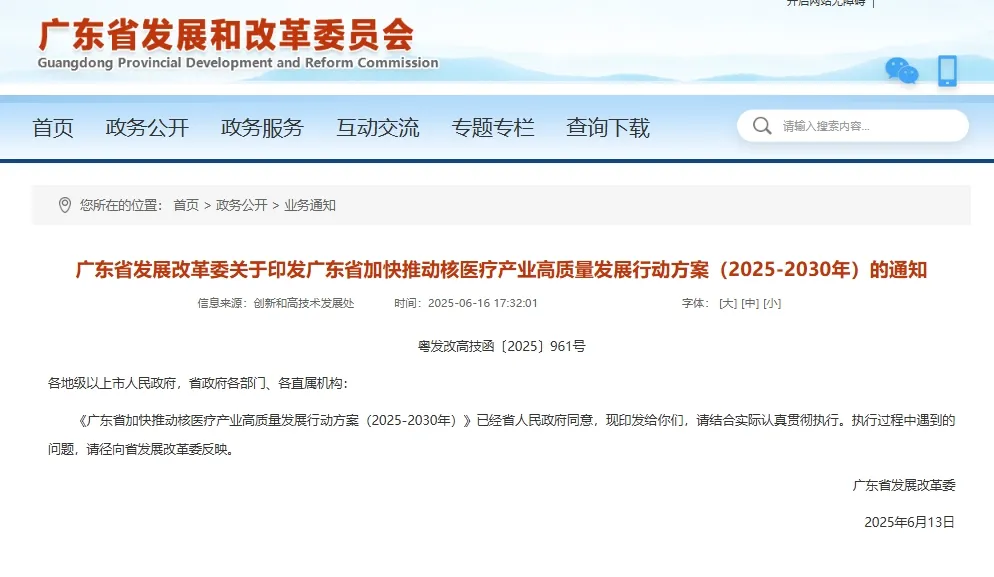 国家《医用同位素中长期发展规划(2021—2035年)》提出在2030年前要完成5—10种医用同位素及放射性药物的产业转化。《广东省加快推动核医疗产业高质量发展行动方案(2025-2030年)》聚焦钇-90、镥-177等关键核素的稳定供应能力建设。