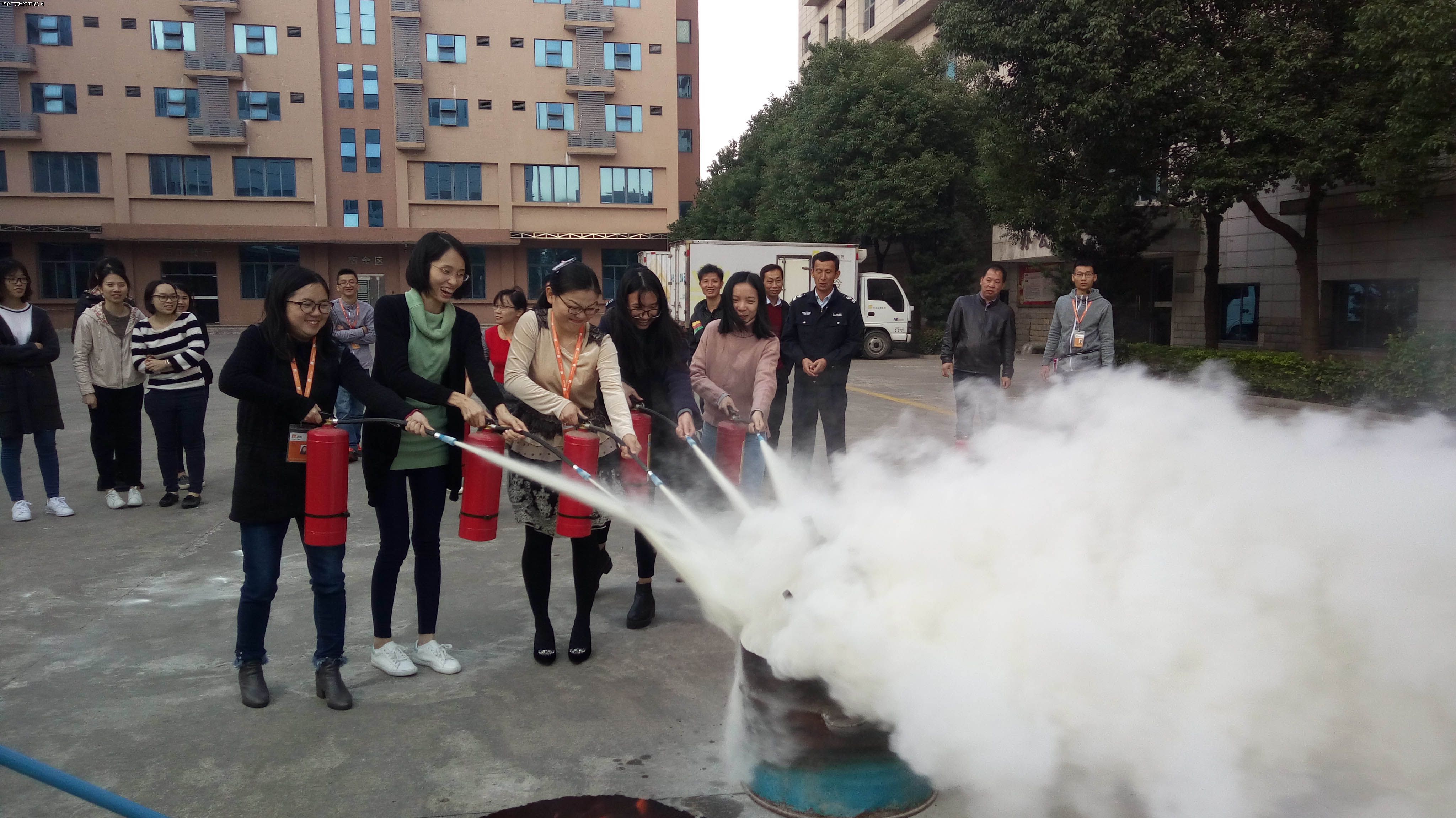 在消防安全演习当天,随着消防警报拉响,各部门同事迅速行动,按照既定的疏散线路紧张有序地撤离办公区域,快速集中到指定的地点,并逐级上报各部门的疏散集合情况。在逃生演习过后,人力资源及行政部组织模拟火灾扑救演练,在EHS专员指导下,全体保安、各部门的志愿者以及全体新入职的员工认真学习了消防水管和灭火器的使用方法,并成功扑灭了火焰。